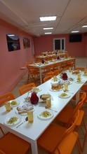 В субботу и в воскресенье в столовой проводят банкеты и фуршеты. Здесь есть два уютных банкетных зала вместимостью 40 и 15 человек, а также можно закрыть полностью всю столовую под ваше мероприятие. Помещение подойдёт для празднование свадьбы или выпускного бала, организации юбилея в кругу родственников или дня рождения с друзьями, для корпоративной вечеринки в честь Нового года, мальчишника по случаю 23 февраля или девичника 8 марта, а также для поминальных обедов.